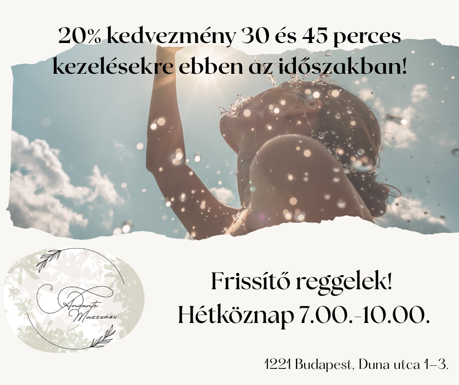 20% kedvezmény 30 és 45 perces kezelésekre hétköznap 7-10 között.